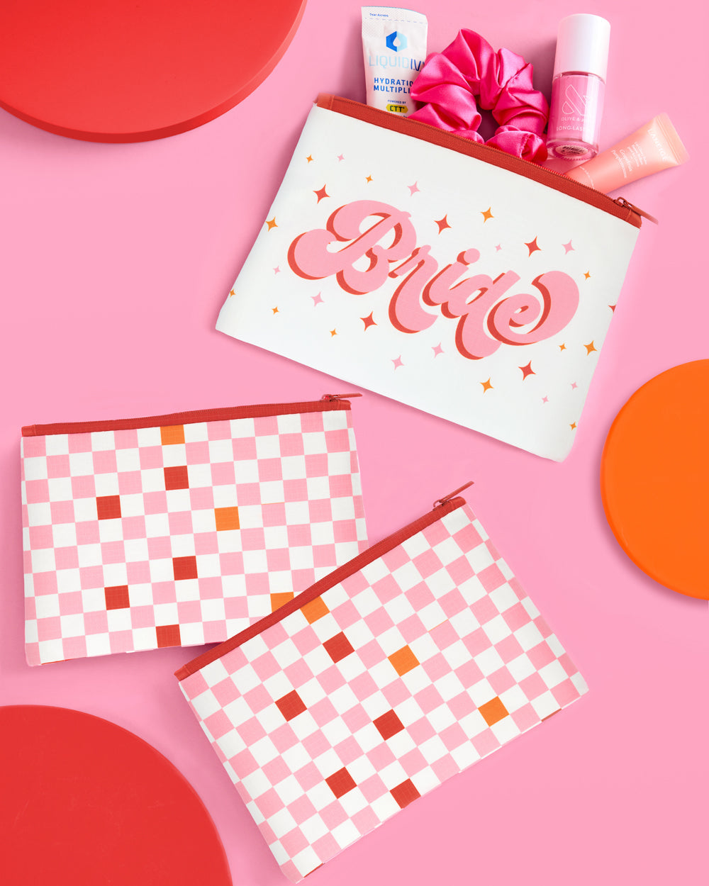 Say goodbye to boring bach pouches and say hello to your new fav bags. Perfect to hold your extra hair ties, advil, and liquid-IV, these pouches will have you looking cute and organized in no time.