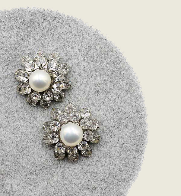 Swarovski Elements crystal vintage finding with Freshwater pearl center. Measures approximately 3/4″ wide.