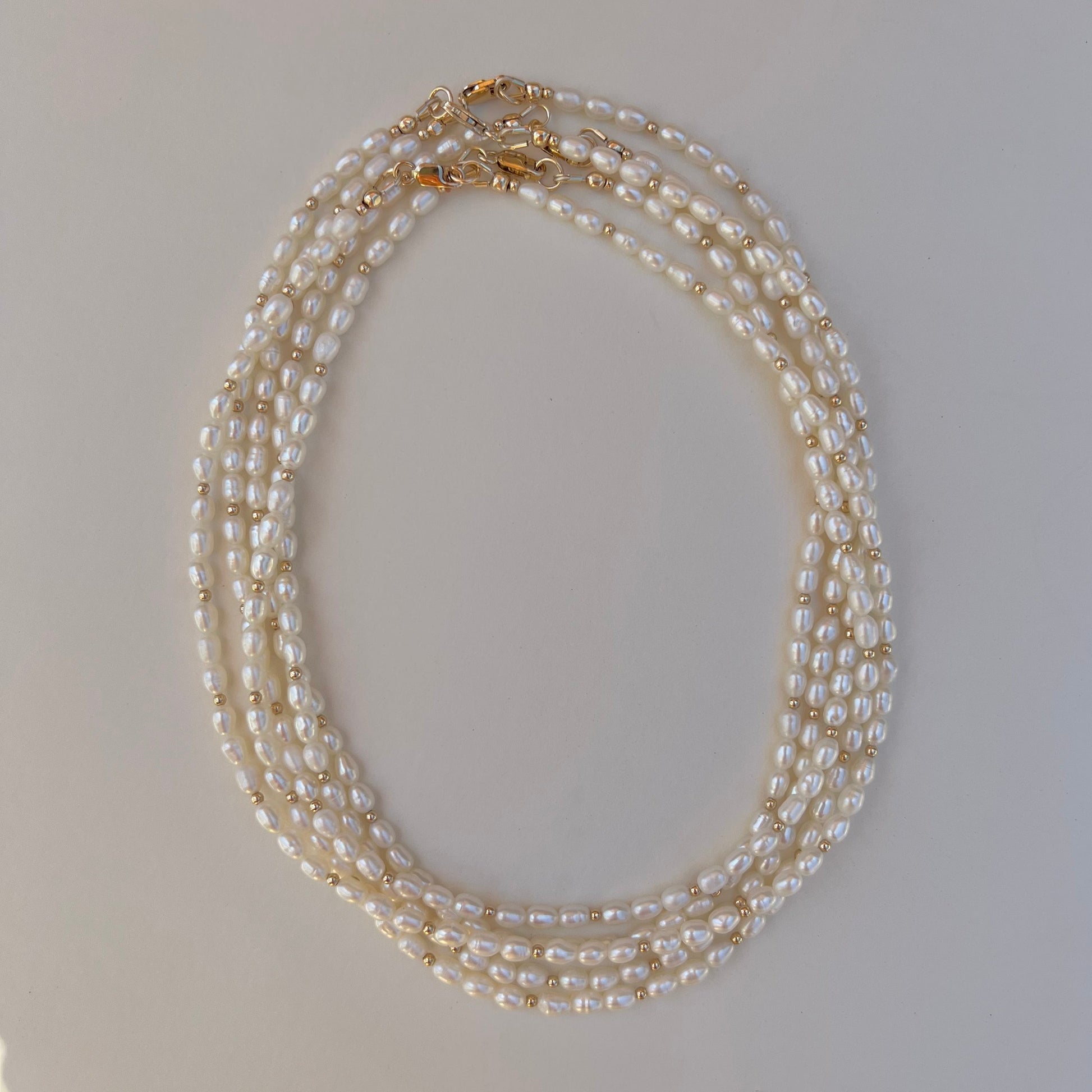 Dainty vintage pearl and gold beaded necklace. Layer with our gold-filled chains to complete the look. Inspired by Hermosa Beach.