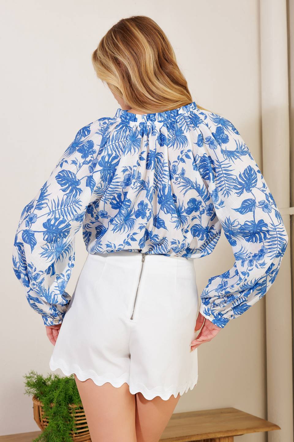 A solid woven skort with ric rac ribbon trim and back zipper closure