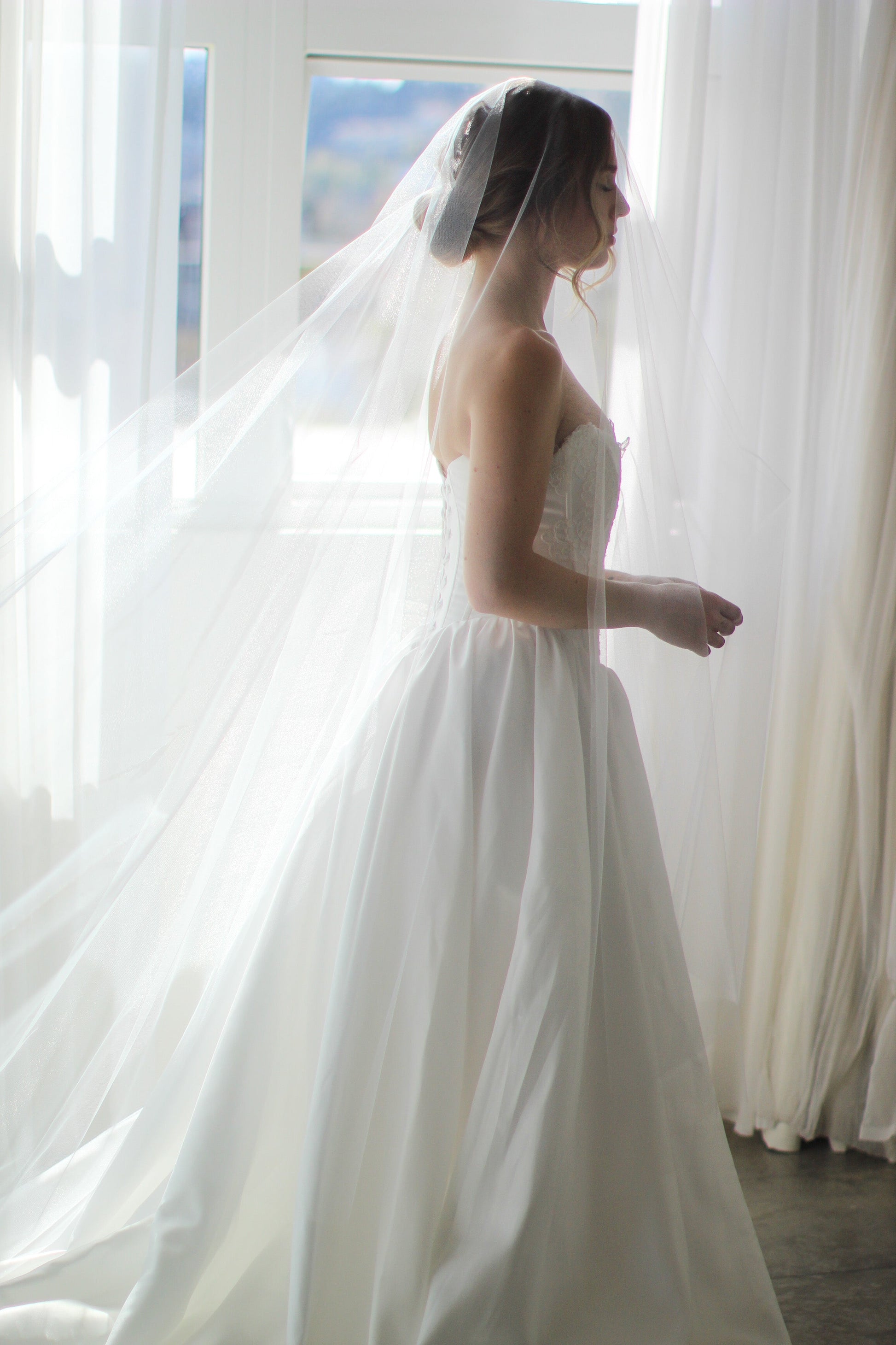 This is a raw edge veil made to order in the color of your choice. Most bridal gowns are ivory or light ivory, please send me a message if you are unsure of your dress color. If the color you would like is not listed, please inquire. I'm happy to help!