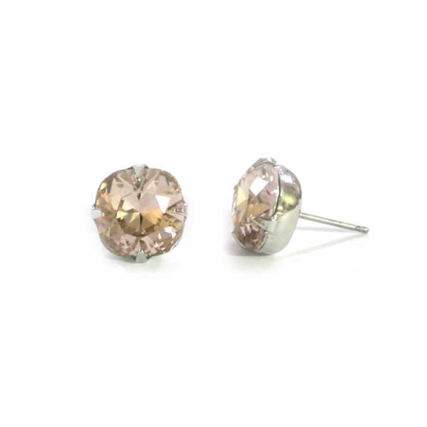 The Mia Stud. A Swarovski cushion-cut crystal. Same as 11067 but without Crystal chain around the setting and slightly smaller than the 12378 stud. This stud measures 3/8″. Light Azore and Silver Metal. Great for BRIDESMAIDS!