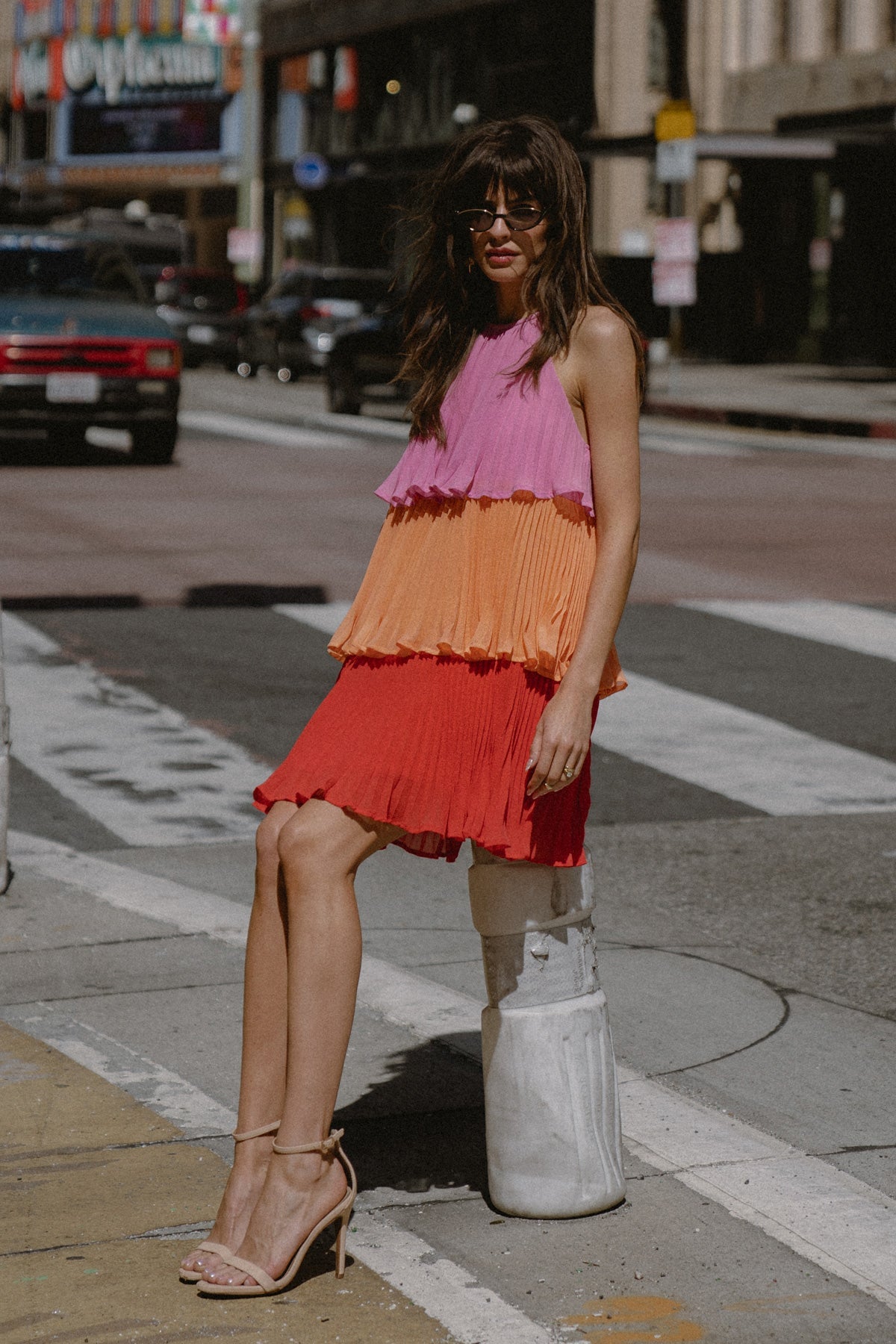 Introducing the OUTSTANDING EFFORT WOVEN MINI DRESS. Crafted from a solid woven fabric, this pleated mini dress features a flattering halter neckline and layered pleated body. Finished with back button closure, it is sure to elevate any wardrobe.