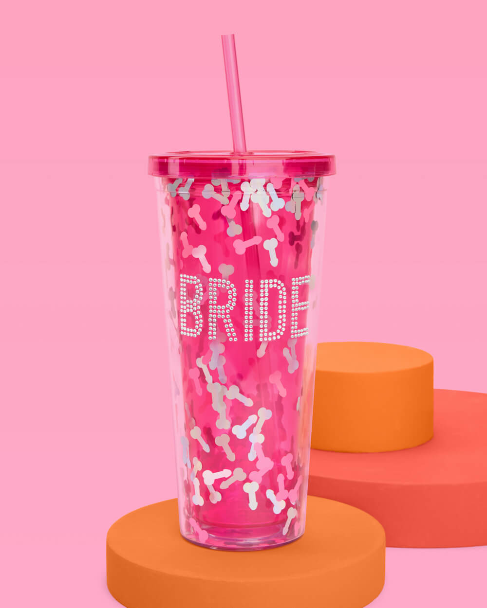 Pink penis confetti "Bride" tumbler, holds 16 oz