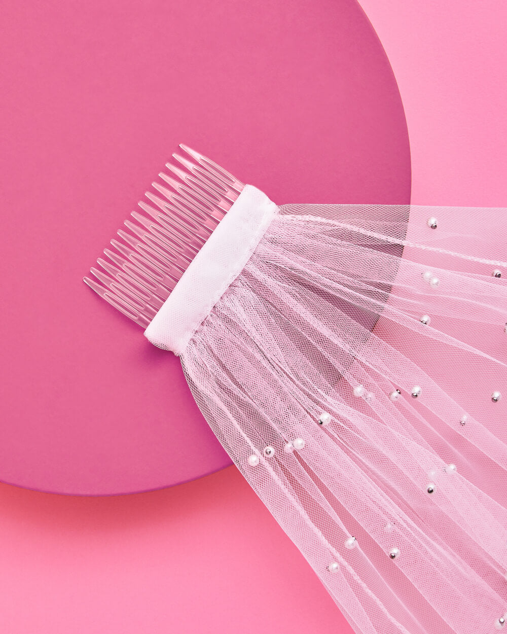 Pearls on a veil? Groundbreaking. Channel your inner Audrey Hepburn with this vintage inspired veil. Perfect for brunch, bridal showers + drag shows - she really does it all!