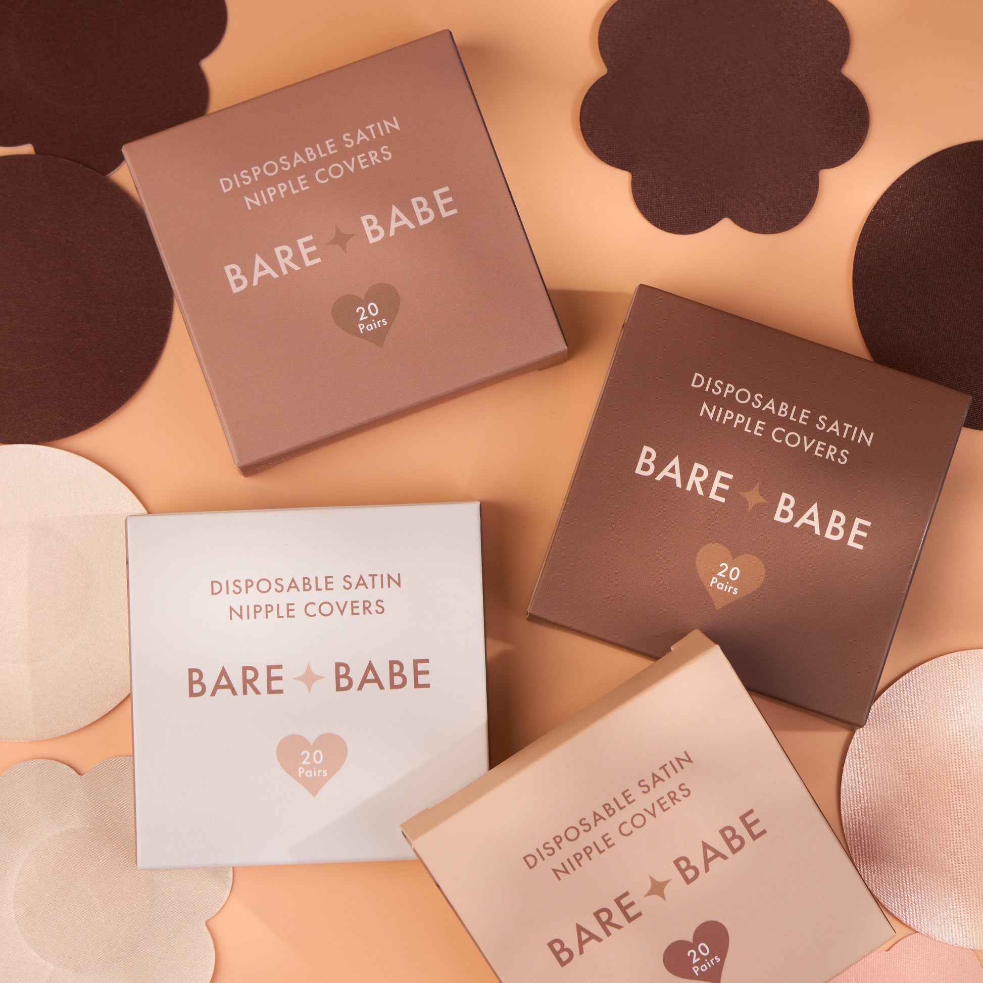 Soft Satin Nipple Pasties in 4 beautiful shades to match your skin tone. Made from 100% medical-grade materials, these nipple cover stickers are hypoallergenic and perfect for sensitive skin. Comes with 20 pieces of the round shape and 20 pieces of the flower shape (10 Pairs of each).