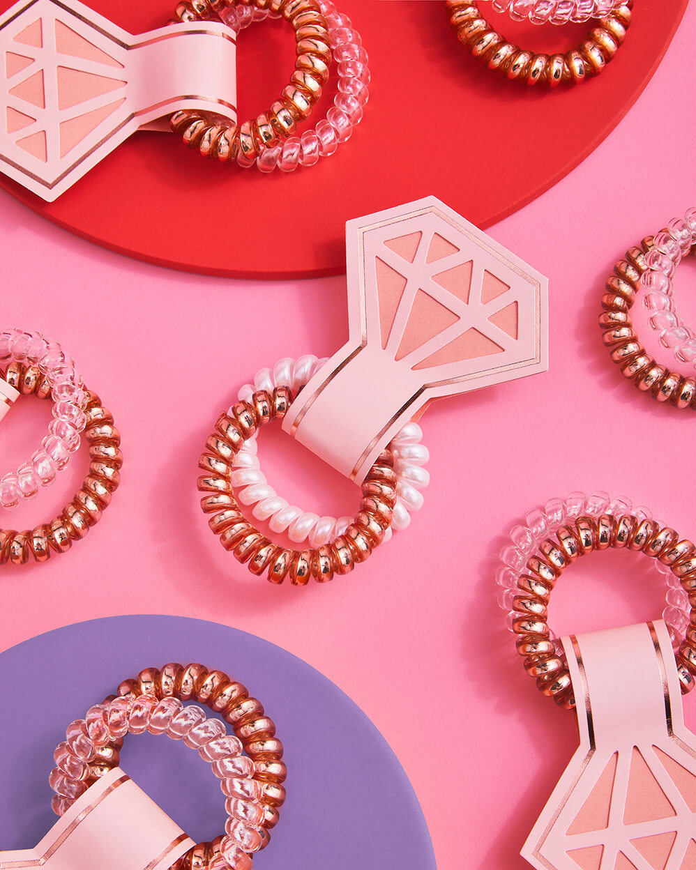 For the Babes: 7 packs of 1 rose gold + 1 clear scrunchie
