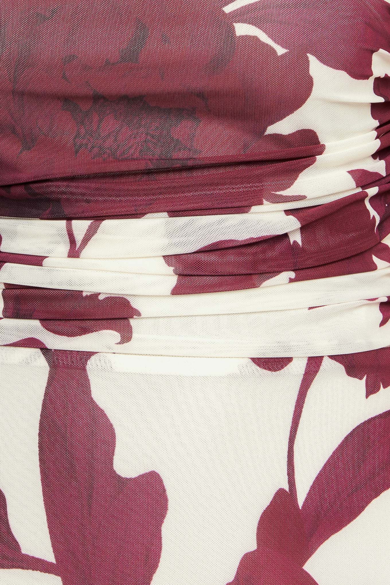 WINE BLOOM POWER MESH MIDI DRESS